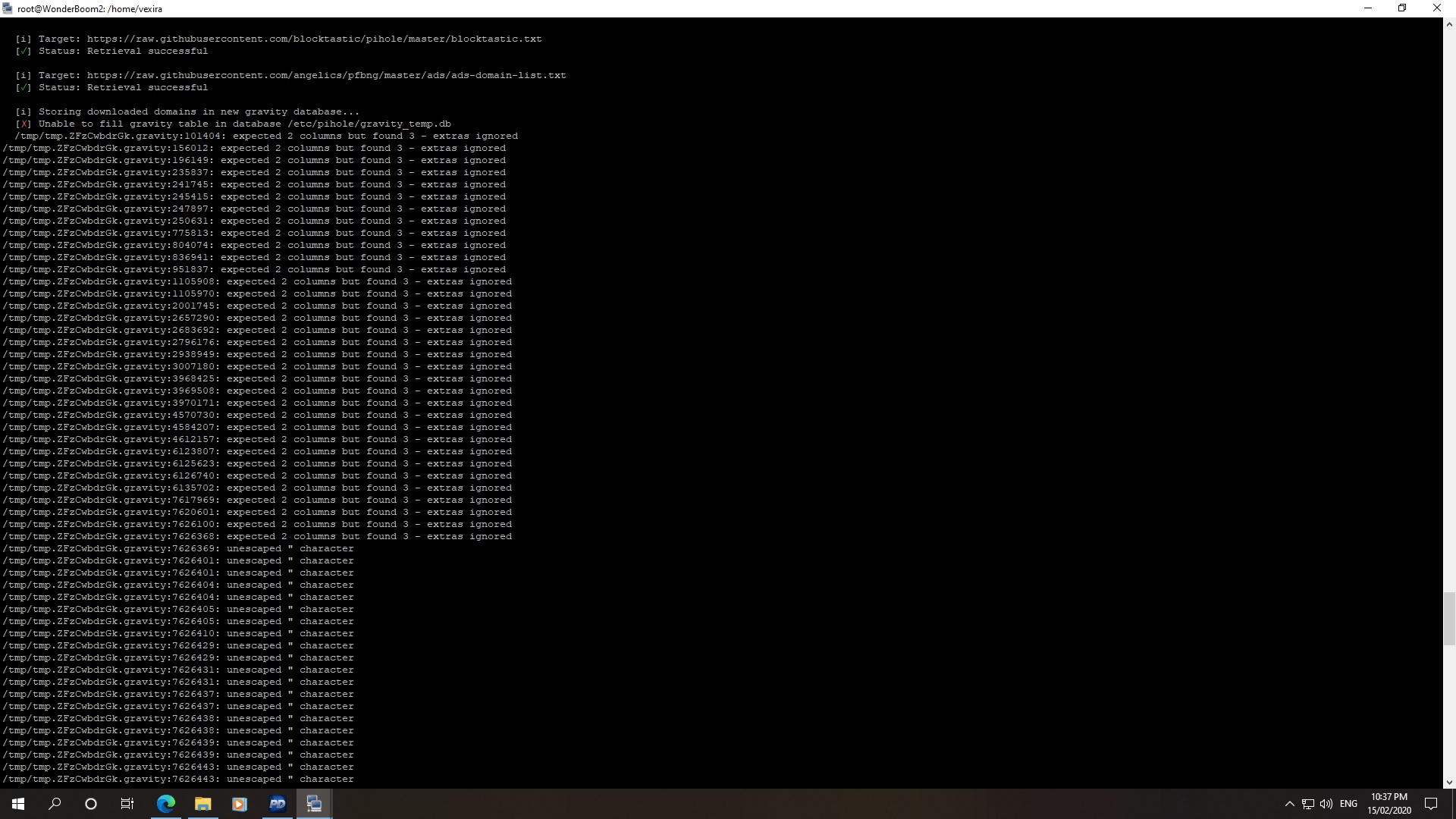 /tmp/tmp.FOqTchhgRQ.gravity:8688232: INSERT failed: NOT NULL constraint failed: gravity.adlist_id