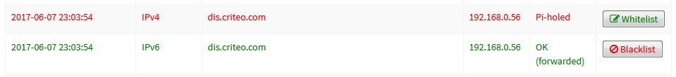 I don't know if that's where the ad is i just think it should be noted that I've added it and it's still forwarded.. but i see the blacklist doesn't list ip version.