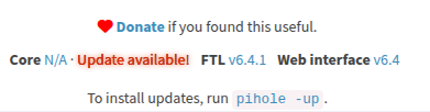 Additionally, I tried with sudo pihole updatechecker, which runs without issues but doesn’t solve the problem. After running this, I reloaded the admin interface and tried in an incognito browser window; both show Core N/A.