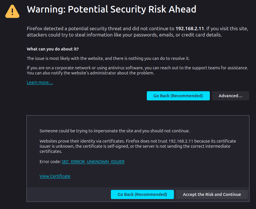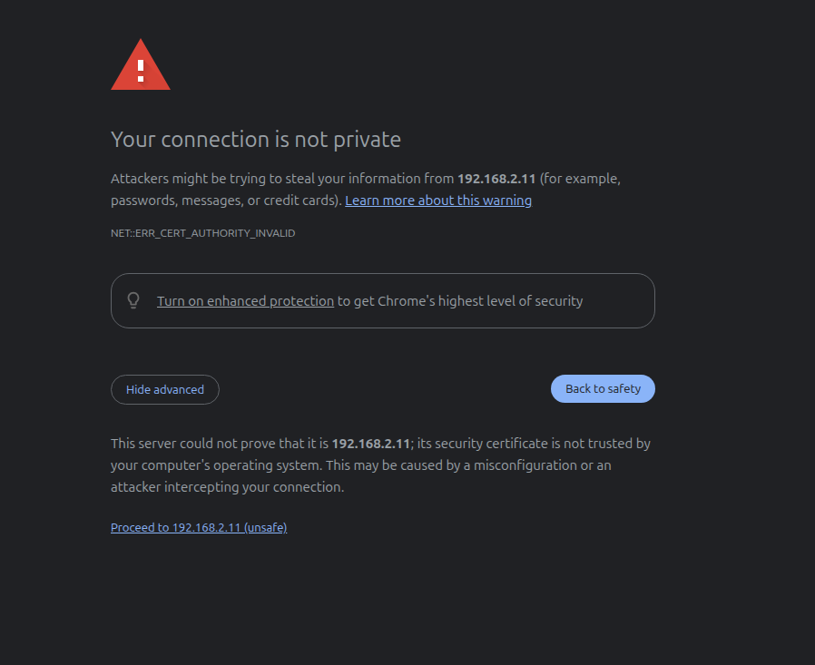 Note: Short lifetimes may cause some inconvenience to users. Whenever the certificate is automatically regenerated, users will again have to confirm that they want the browser to trust the new certificate: