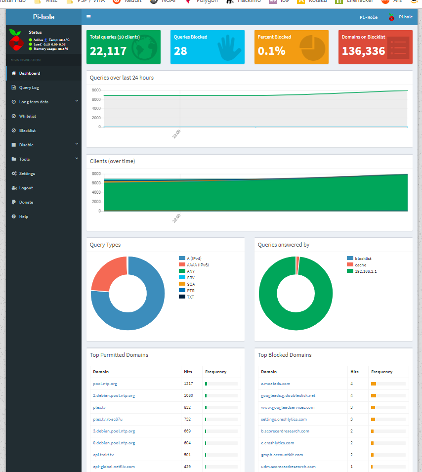 The screen capture of the dashboard doesn't account for that level of traffic - do you have some domains excluded from the top lists (Admin GUI > settings > API/Web interface)?