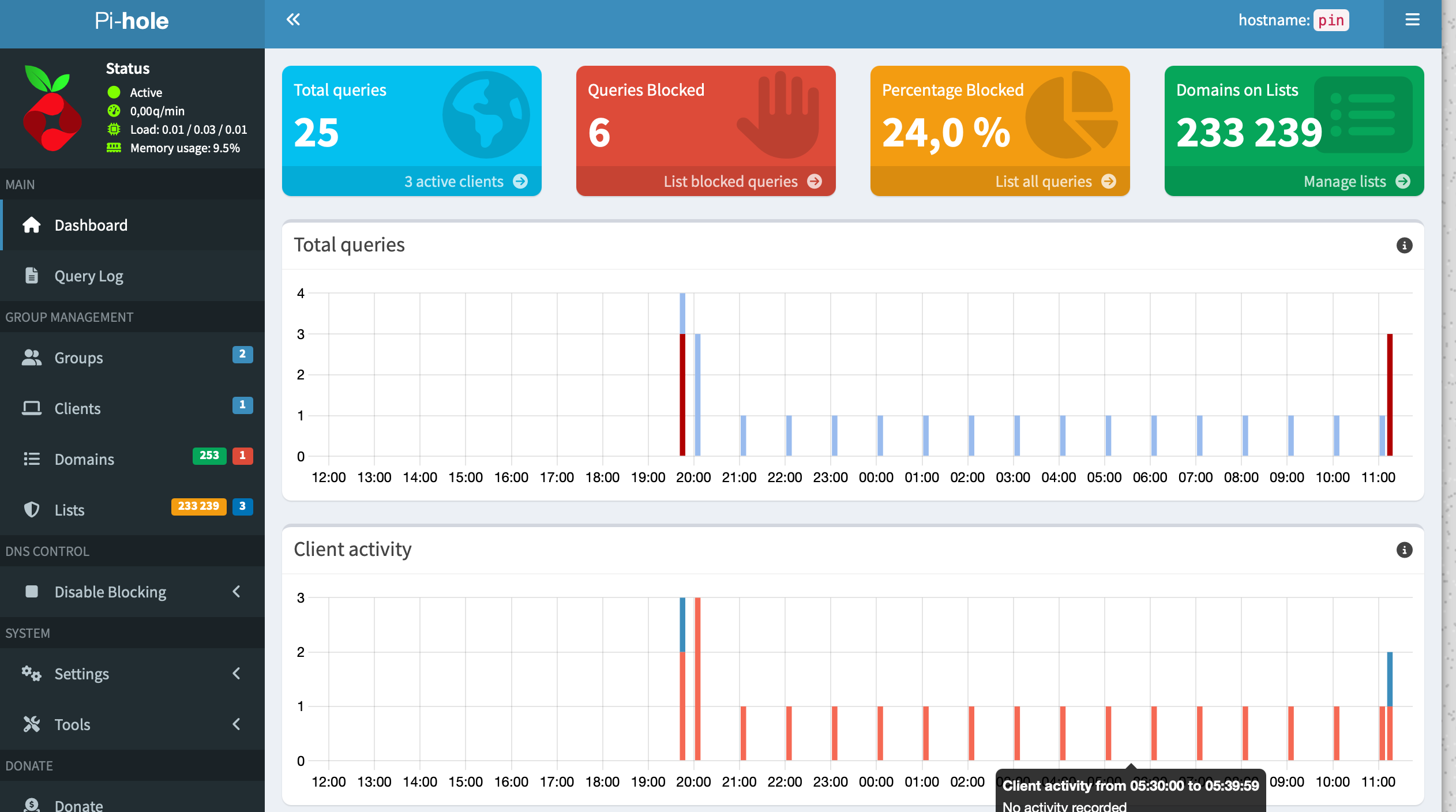 Also the dashboard doesn't show any clients query (although some clients are accessing it).