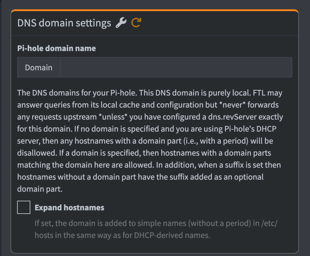 for this domain. If no domain is specified and you are using Pi-hole's DHCP