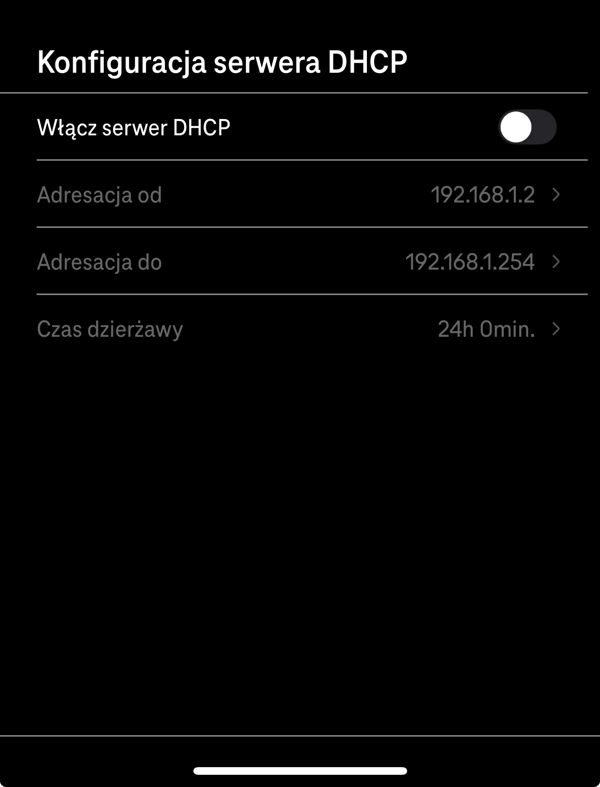 (It’s in Polish, I couldn’t change the language of this silly app, basically first toggle turns off DHCP server)