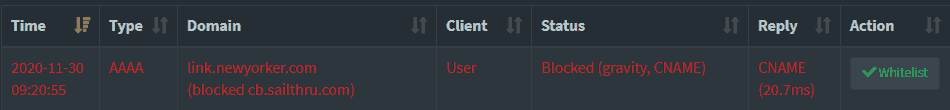 I subscribe to New Yorker newsletter and it seems that articles linked from this email are blocked by pi-hole. The URL starts with https://link.newyorker.com/click