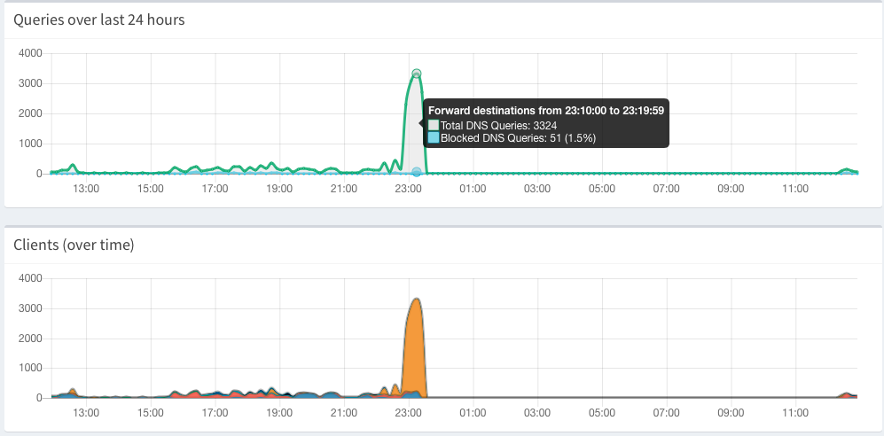 All of this has come because in the same machine I've setup the pi.hole (a cubox-i) I have also a plex server, among other things. Yesterday I added a music library to the plex server and it create too many request in a really short period of time.
