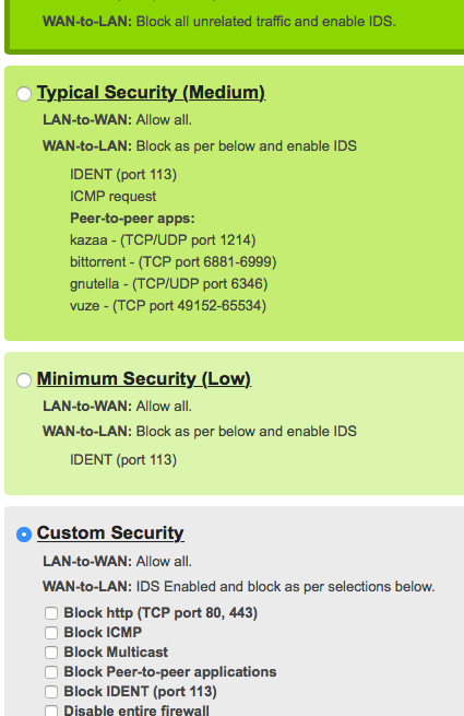 Edit: here are some of the Arris firewall options, customer to Medium, as High wouldn't fit in the screenshot: