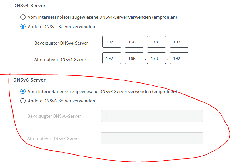 Um diese Konfiguration zu nutzen, muss die IP des Pi-hole als "Lokaler DNS-Server" in