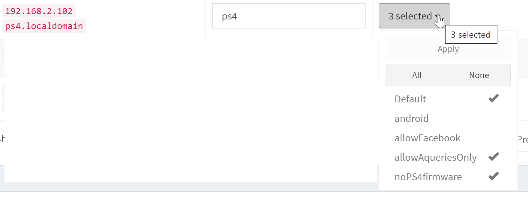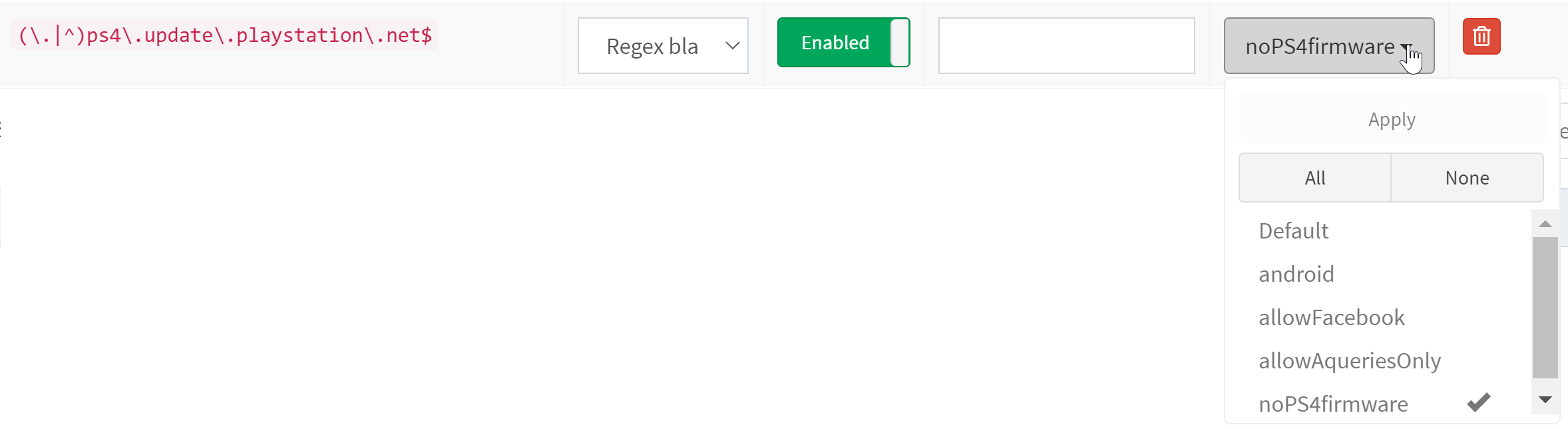 - create the wildcard entry (see above) and assign it to the noPS4firmware group