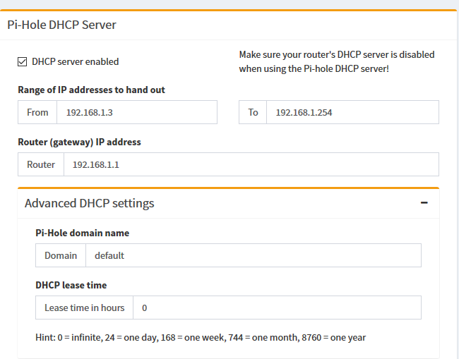 But that extra file (02-pihole-dhcp.conf) isn't in my /etc/dnsmasq.d... I also tried pressing save in the DHCP section of settings, that didn't help either.