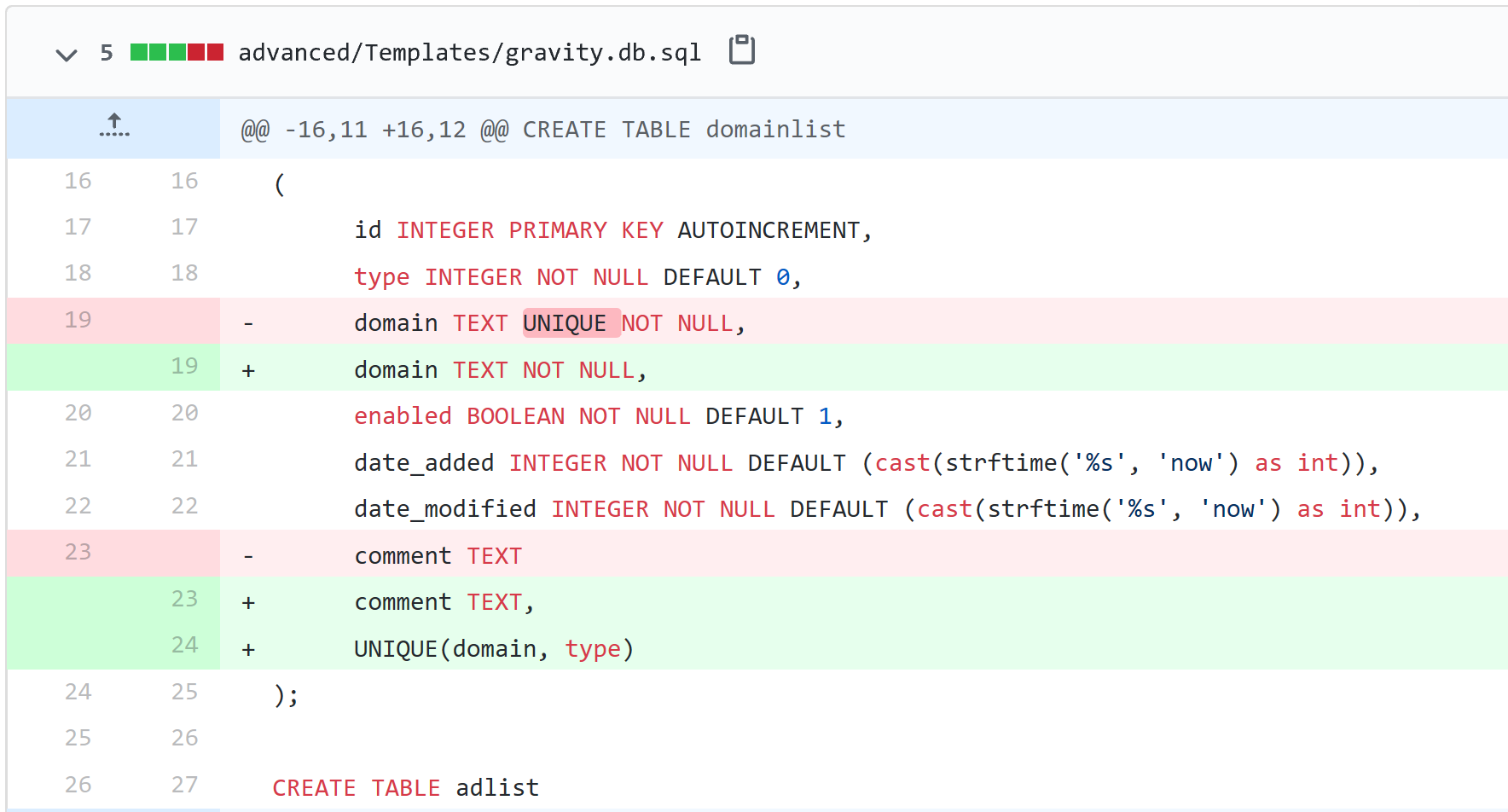currently (from /etc/.pihole/advanced/Scripts/database_migration/gravity/3_to_4.sql), it's