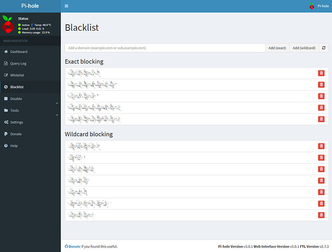Etwas umständlicher ist natürlich das Updaten der Blacklist. Erst muss die neue Domain in die Datei, dann mittels pihole -g ein neuer Durchlauf gestartet werden.