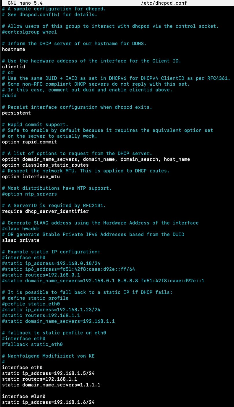 Okay, static domain_name_server=1.1.1.1 sieht gut aus. Dann sollte auch /etc/resolv.conf nun bei 1.1.1.1 bleiben.