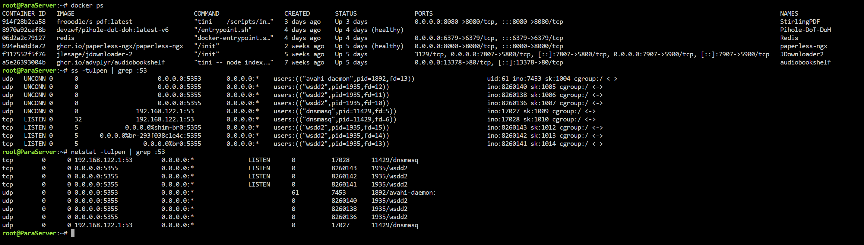 At one point, ss -tulpen | grep :53 showed that pihole-FTL (dnsmasq) was not listening on the LAN IP. Instead, it was bound to a different internal interface (192.168.122.1), which is not part of my LAN (192.168.178.0/24).