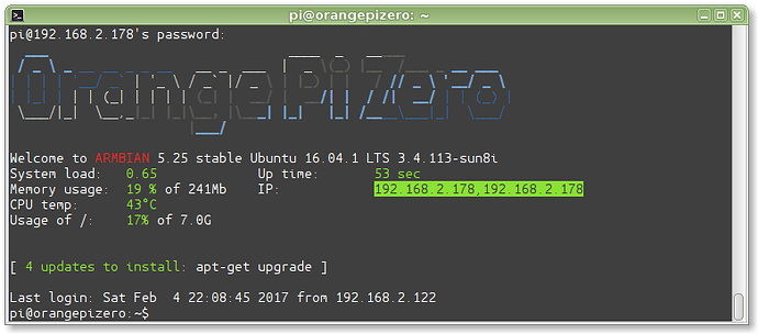 Now I restarted the Orange Pi Zero