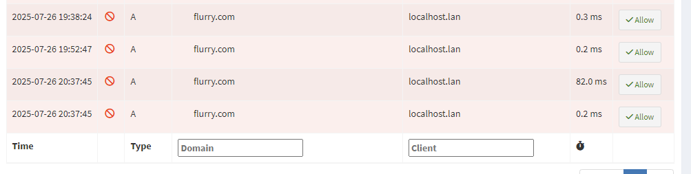 2025-07-30 12:47:19.645 BST [18876M] DEBUG_LOCKS: Removed SHM lock in _FTL_new_query() (/app/src/dnsmasq_interface.c:999)