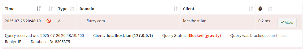 2025-07-30 12:47:19.251 BST [18876M] DEBUG_QUERIES: Checking if "||com.edgesuite.net^" is in gravity (ABP): no