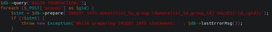I disabled some domains via web UI blacklist and re-enabled them also via blacklist. They got not associated with the Group "unassociated" but instead "non selected". This breaks the blocking because all my clients are in the default group unassociated.