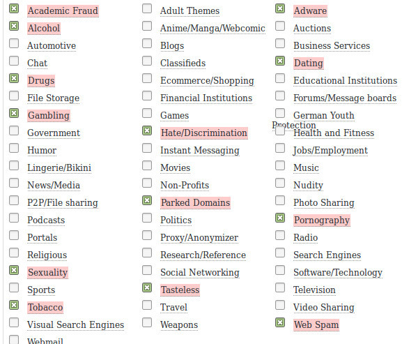 I am using OpenDNS with customs settings for children ( porn + other categories )... it is free for home use.