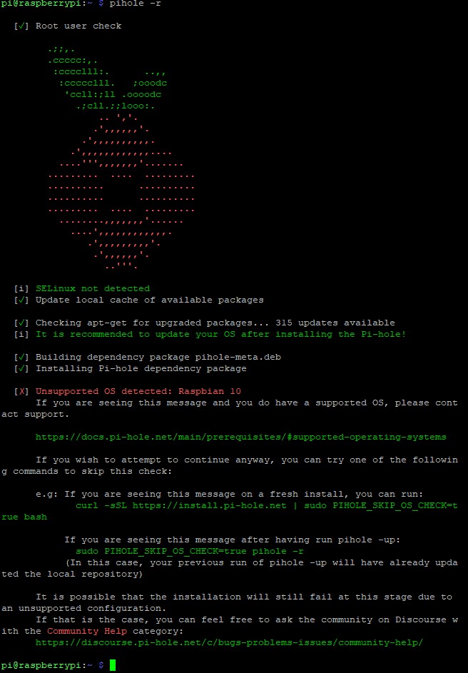 Your system is running on Raspberry Pi OS 10/Buster, which Pi-hole doesn't support anymore.
