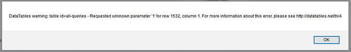 DataTables warning: table id=all-queries - Requested unknown parameter '1' for row 1532, column 1. For more Information about this error, please see http://datatables.net/n/4