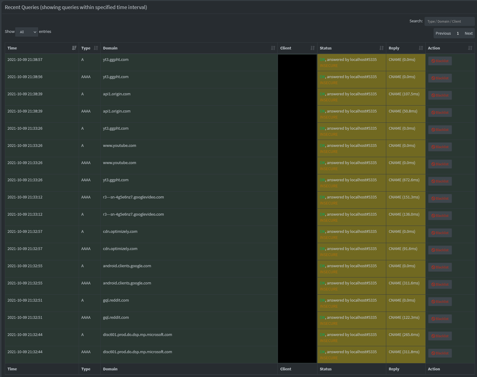 Oct 11 22:32:25 dnsmasq[18362]: 1260 192.168.178.20/59780 reply youtube-ui.l.google.com is 172.217.18.110