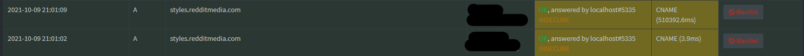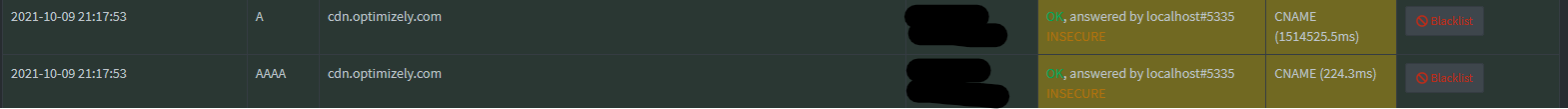 You can even see that difference in my log above. The CNAME reply for the A query was cached and had a response time of 0 but the one for the AAAA query was not cached and had a response time of 42.2 ms.