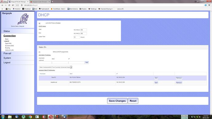 Can you send a screenshot of the DHCP section from the sidebar?