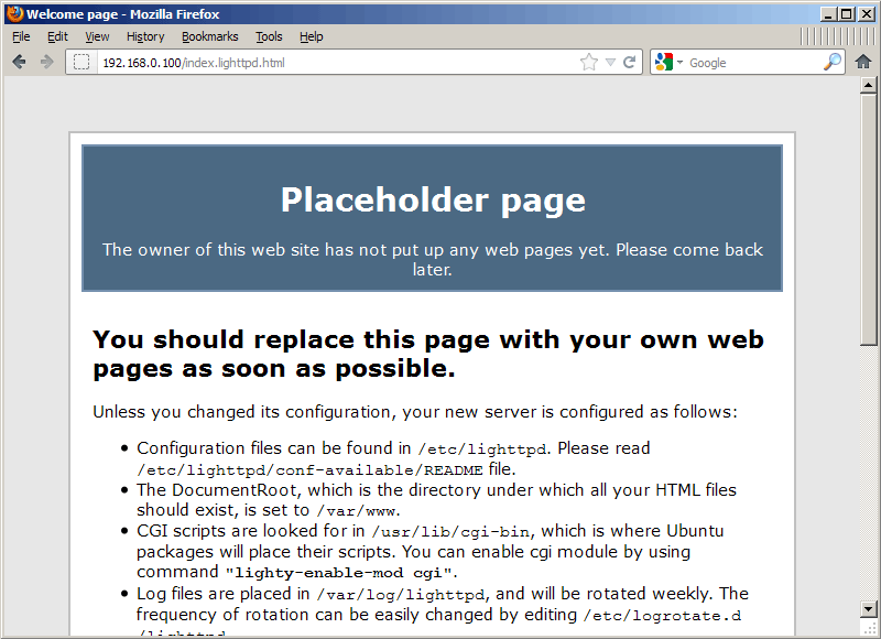 Getting lighthttpd placeholder page instead of new unblock page