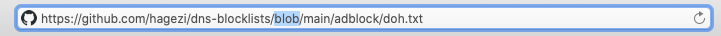 What Pi-hole needs is just the actual raw text file. GitHub has a special address for that. To get to it, first copy one of your github.com links from Pi-hole and paste into a browser. You'll see the page load up.