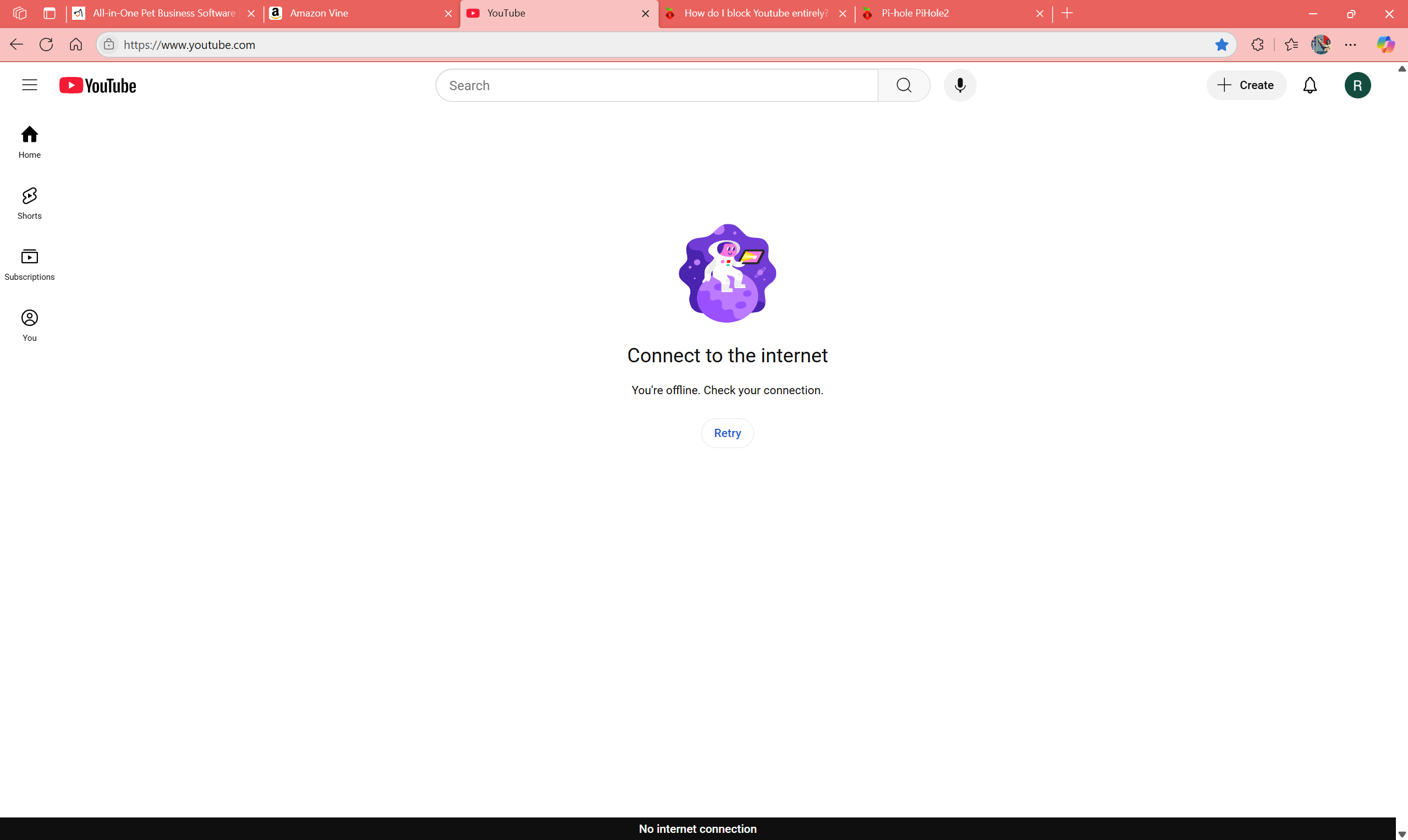 Im fighting this myself right now. I found a solution that seems to be working, not working on my laptop and I checked my tv and the App kicks off and then everything goes black. Go to settings, Local DNS and then add an entry youtube.com and assign the IP to 192.168.50.254 or 127.0.0.1. The page will load but nothing populates.