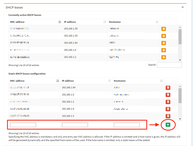 This section allows you to assign DHCP reservations for your network devices. Enter the MAC address of the device and the IP address you want it to have. You can also give it a name so you can easily see what clients are accessing what domains via the query log. So instead of seeing just IP addresses on the dashboard and query log, you can see the client name.