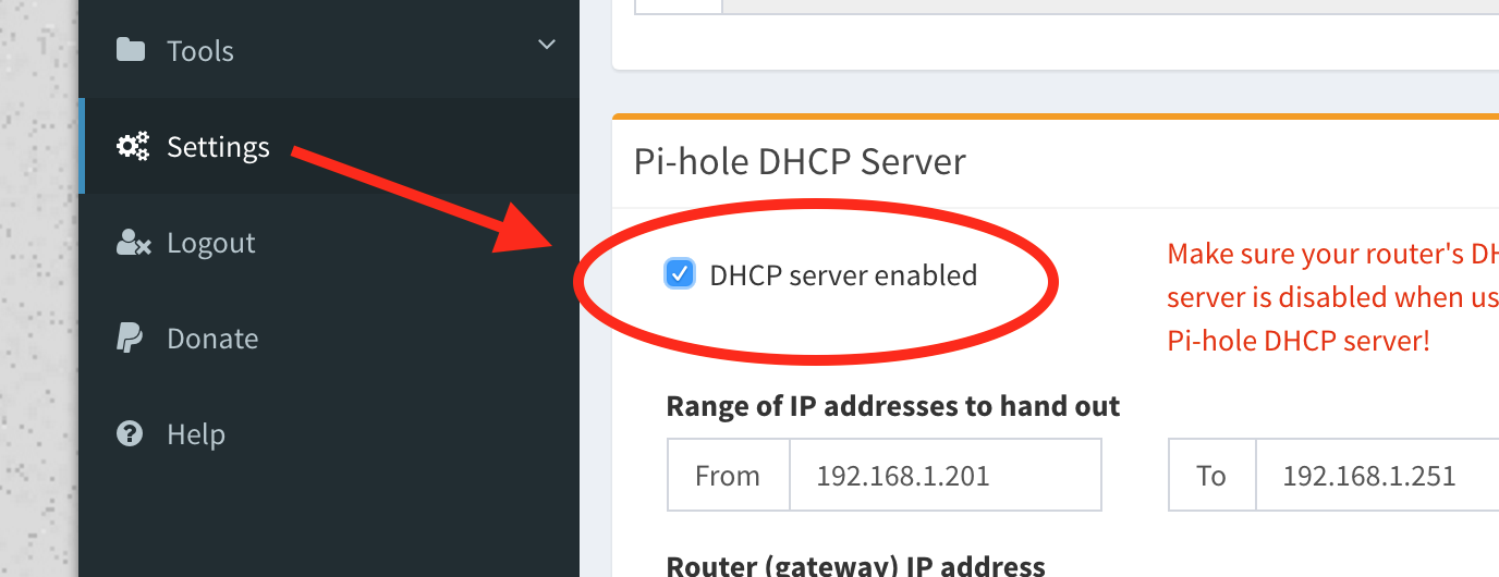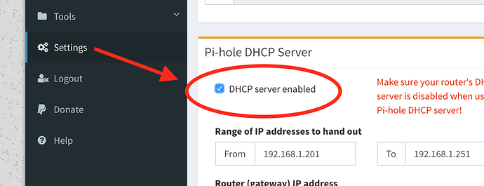 You might not need to use Pi-hole's DHCP server: In many home environments, your router also functions as your DHCP server. In this case, you can often set Pi-hole to be the DNS server for your network clients in the router's DHCP (or LAN) settings page, which allows all of your network clients to block ads simply by connecting to the network.