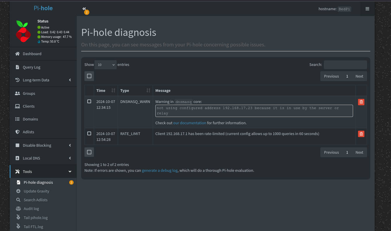 http://pi.hole/admin/debug.php