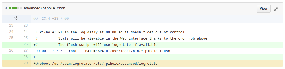 @reboot root /opt/pihole/piholeLogFlush.sh reboot