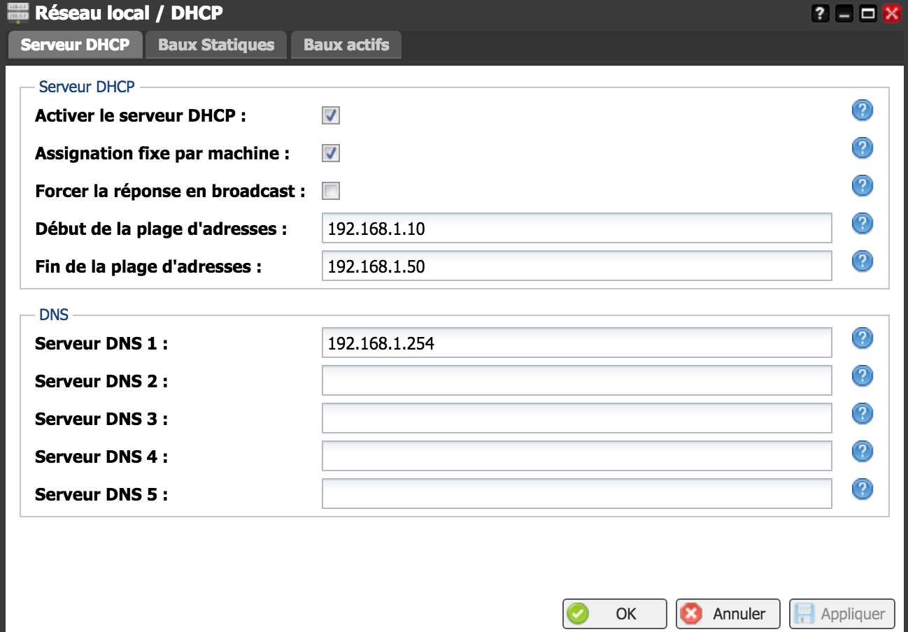 Version de Dnsmasq 2.75 Copyright (c) 2000-2015 Simon Kelley