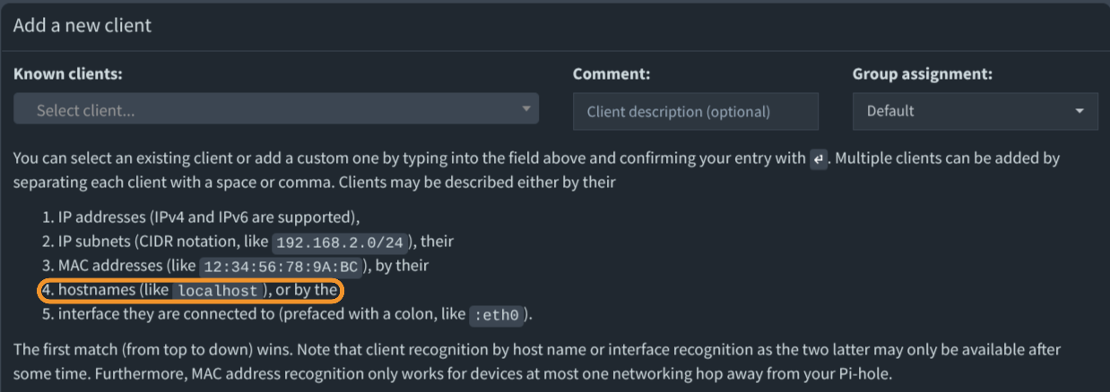 Yeah, I understand that but the client page on pihole mentioned I can use host names