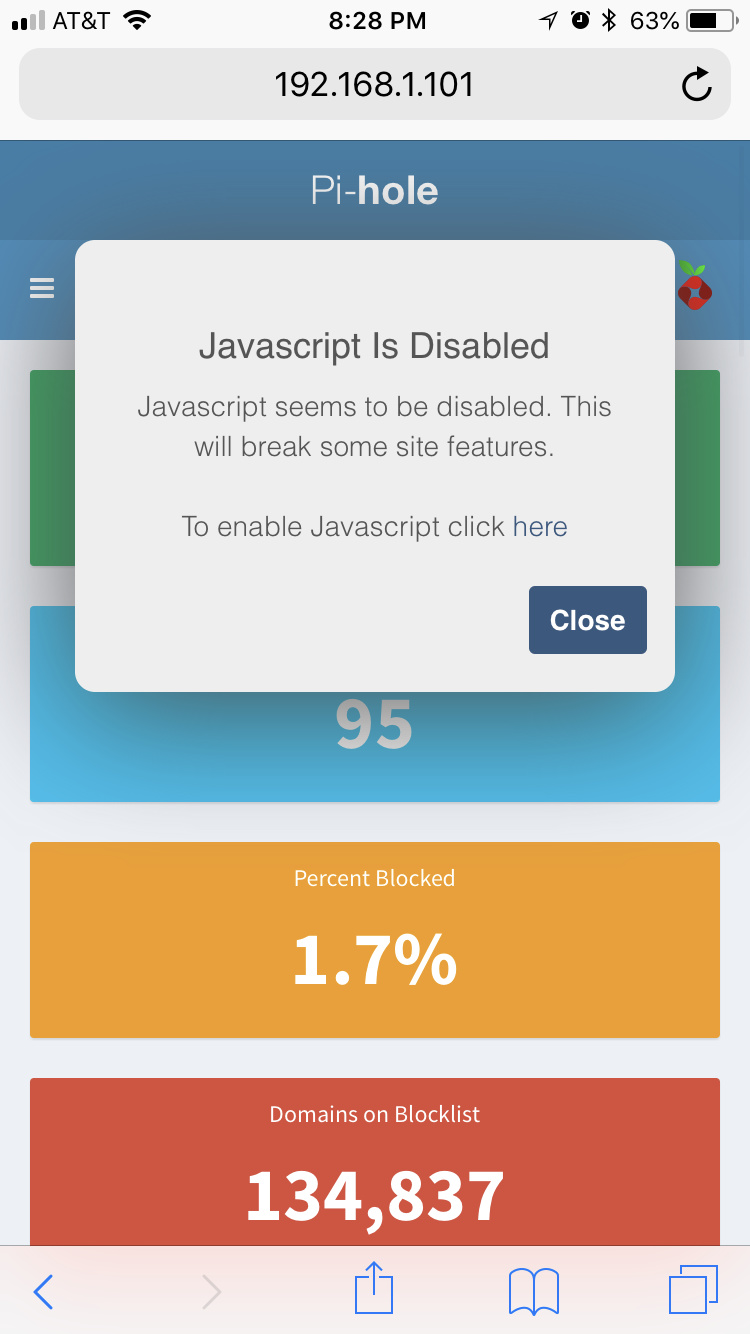 When I navigate to the admin page on my iPhone I get the following error message: "Javascript is Disabled. Javascript seems to be disabled. This will break some site features. To enable Javascript click here." Javascript is enabled on this device.