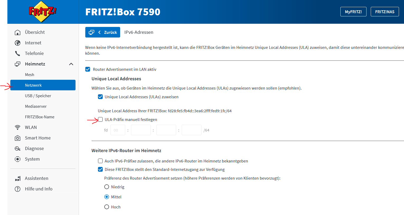 Wenn du den Haken setzt, vergibt die Fritzbox fd00 Adressen an jedes Gerät.