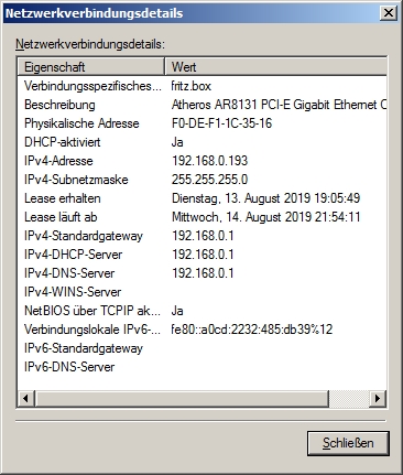 Wenn ja, dann funktioniert die Anzeige in der Tabelle irgendwie nicht. Wenn nein, kannst Du mal einen Screenshot der Netzwerkdetails auf dem Rechner zeigen?