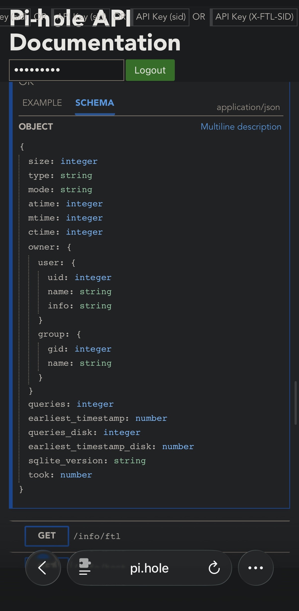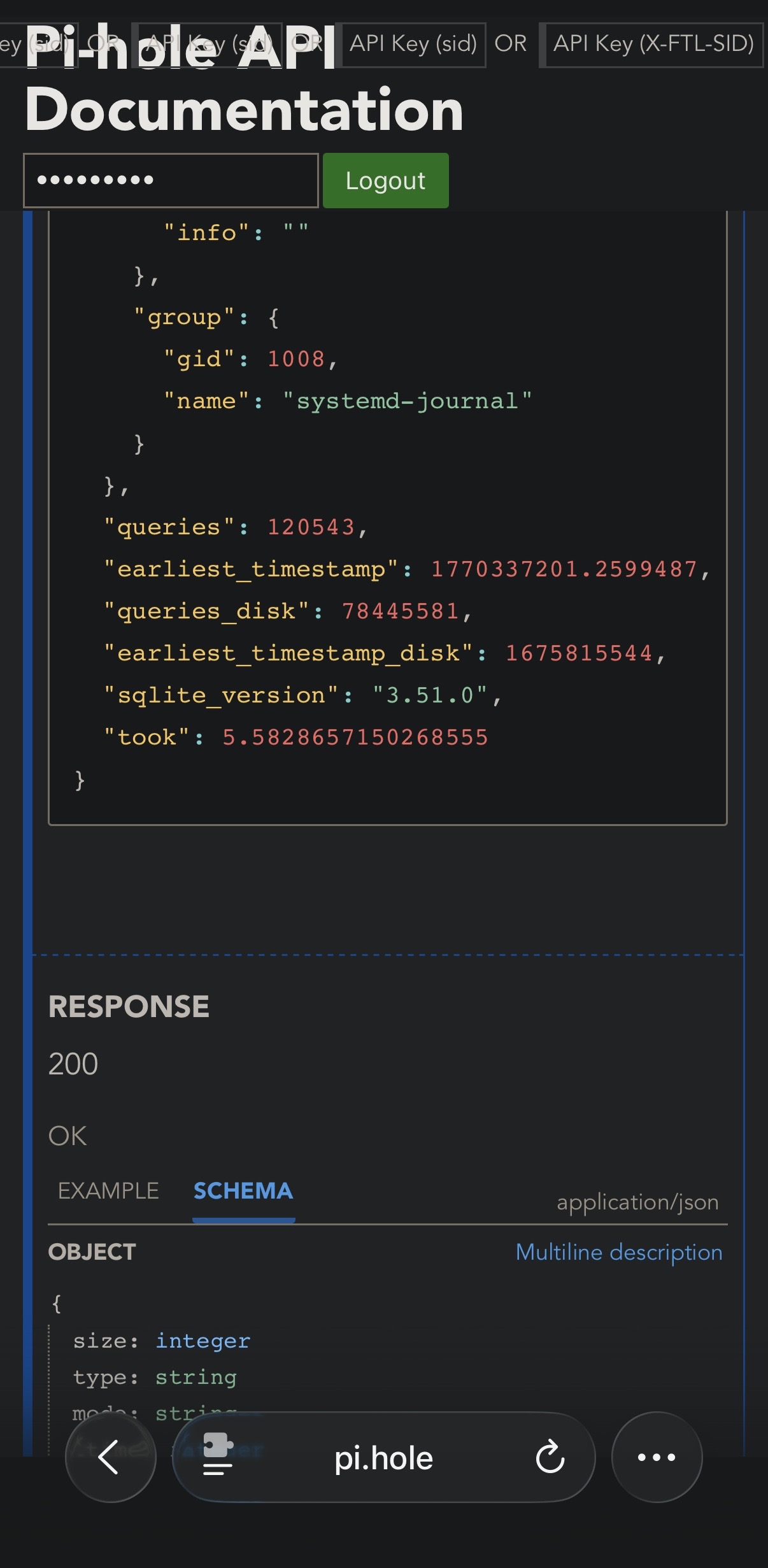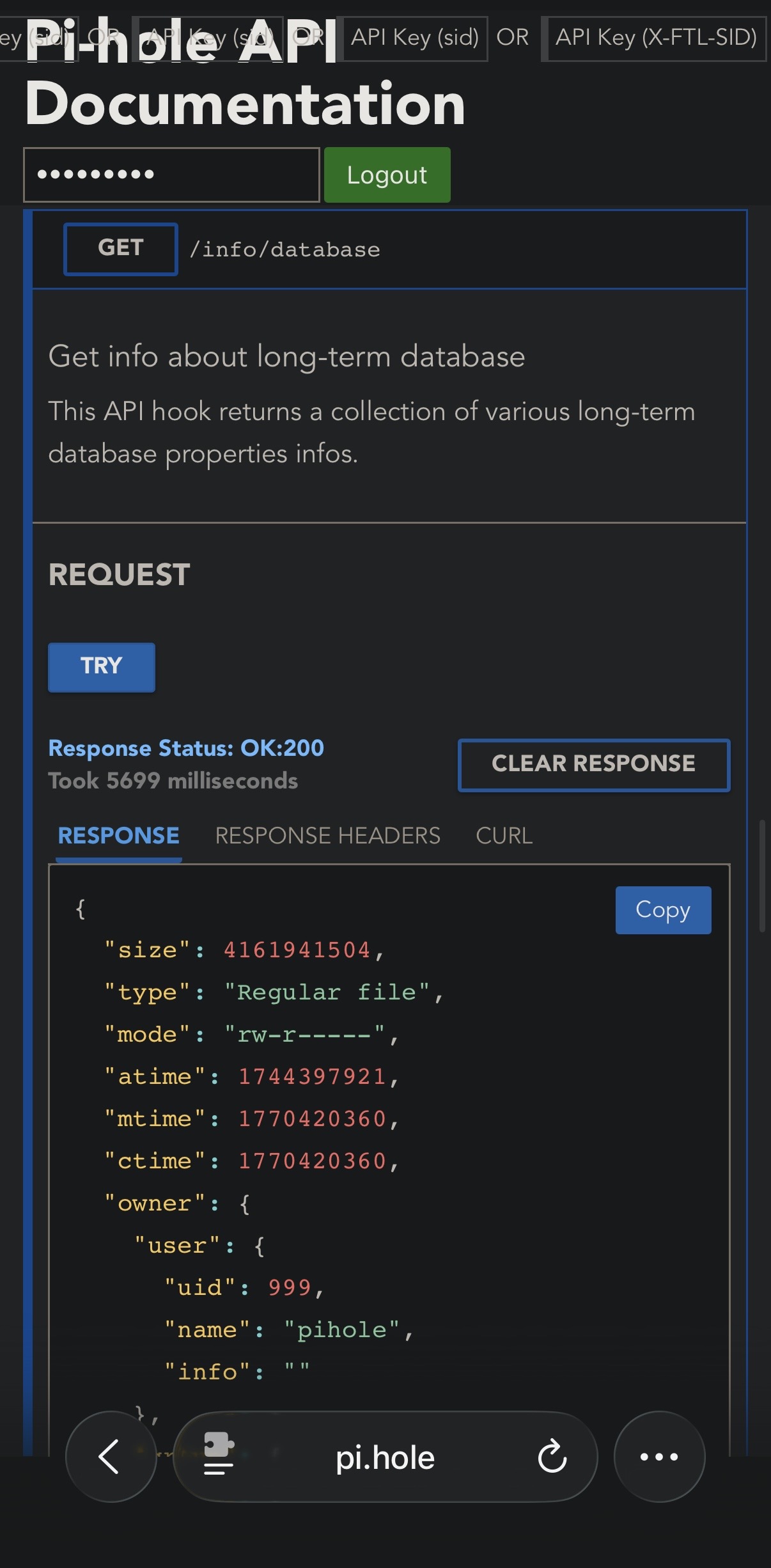 Could you please share a screenshot of an info/database API call on your Pi-hole?