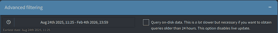 Still, I think the difference is significant, and this is likely due to computing the earliest date, which would force a full scan of the query table's timestamp field.