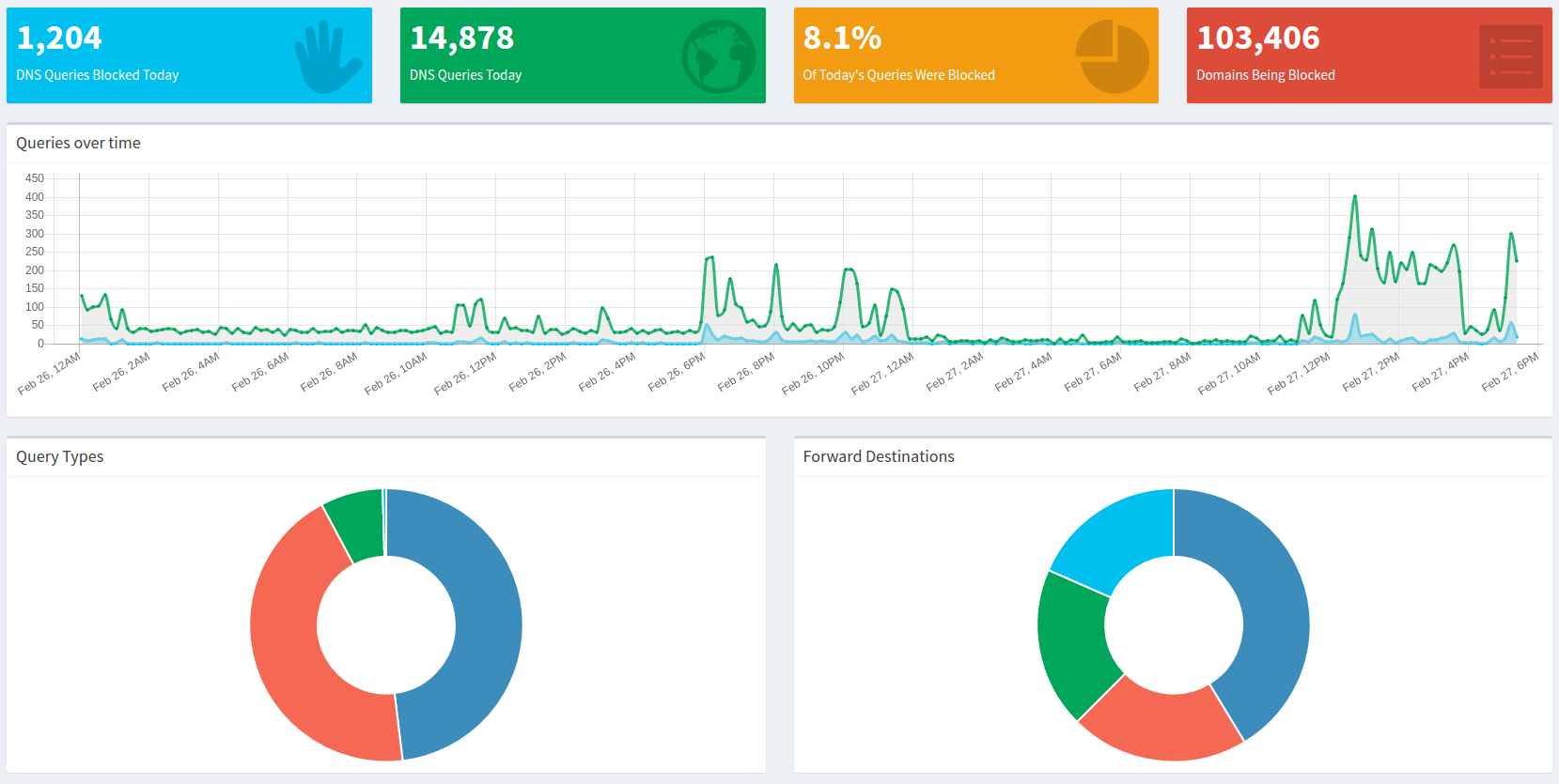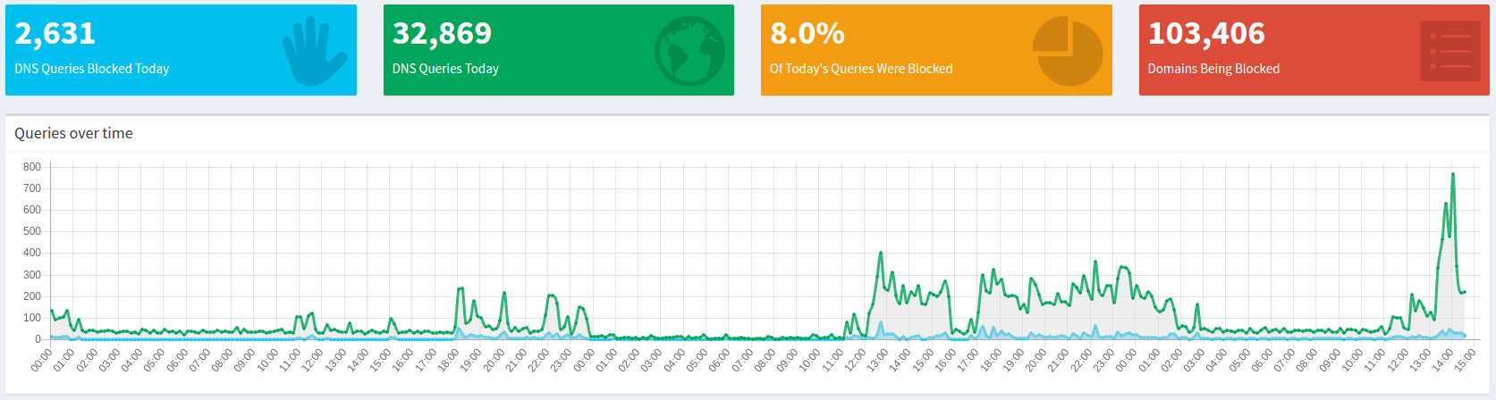 Make the boxes ("DNSQueries Blocked Today", "DNSQueries Today", ...) a little smaller and add check boxes "today" and "yesterday"