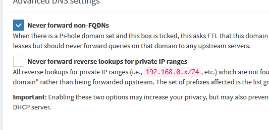 Wenn Pi-hole jetzt als lokaler DNS-Server über DHCP verteilt wird und Du Pi-hole als Upstream aus den WAN-Einstellungen Deines Routers entfernst, kannst Du CF in Pi-hole zur Auflösung lokaler Namen aktivieren bzw. aktiviert lassen.
