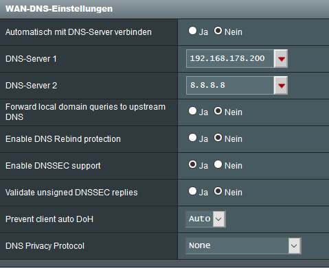 Damit verwenden Deine Geräte nach wie vor Deinen Router als lokalen DNS-Server, und dieser leitet dann die DNS-Anfragen an seine Upstream-DNS-Server weiter, also 192.168.178.200 und 8.8.8.8 bei Dir.