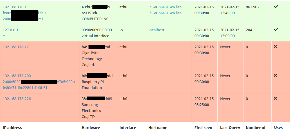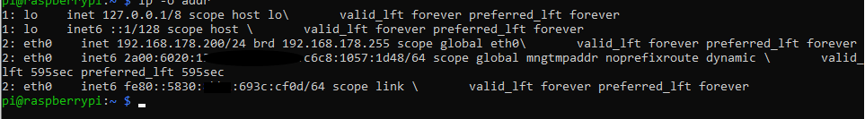 Habe "händisch" hierfür die IPv6 des Rapi (Ausgelesen mit IP -o addr) in setupVars.conf eingetragen. Hier schon die erste Unsicherheit. Habe zwei IPv6 Adressen. Habe die erste genommen?!