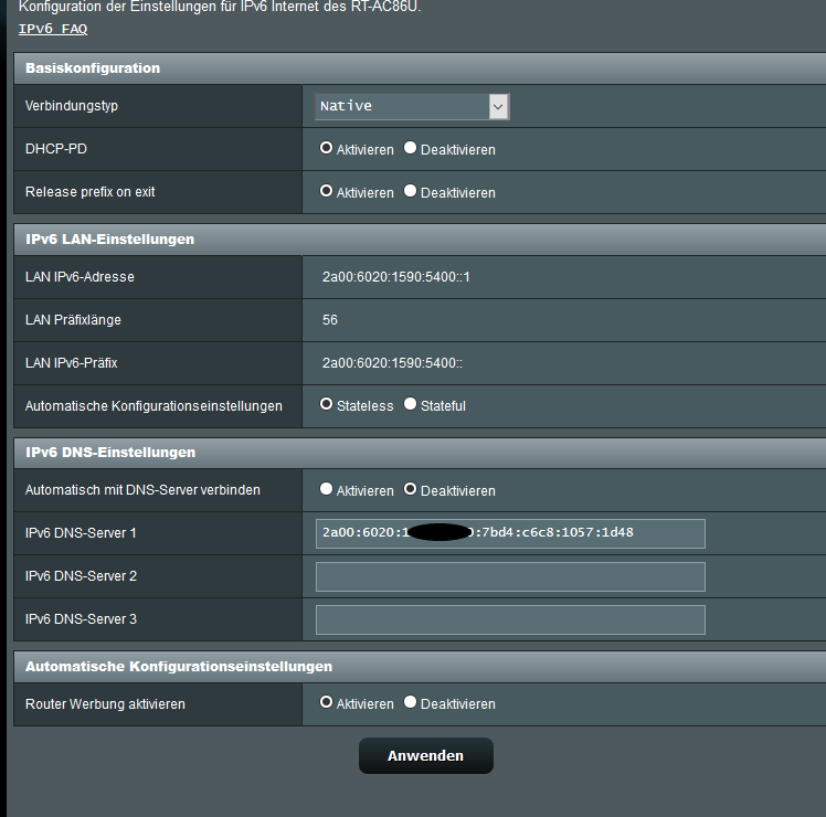 Ich habe was über ULA Adressen gelesen, weiß aber nicht wie ich das im Asus Router aktivieren kann.