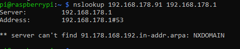 nslookup 192.168.178.91 192.168.178.1
