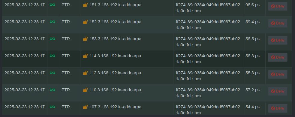 Any reverse lookup for an IP address that isn't assigned by your Fritzbox would prompt your Fritzbox to forward them upstream to Pi-hole, which in turn forwards them to your Fritzbox, and so on in eternity or until timeout - or until Pi-hole's connection pool is exhausted or its rate limit kicks in.