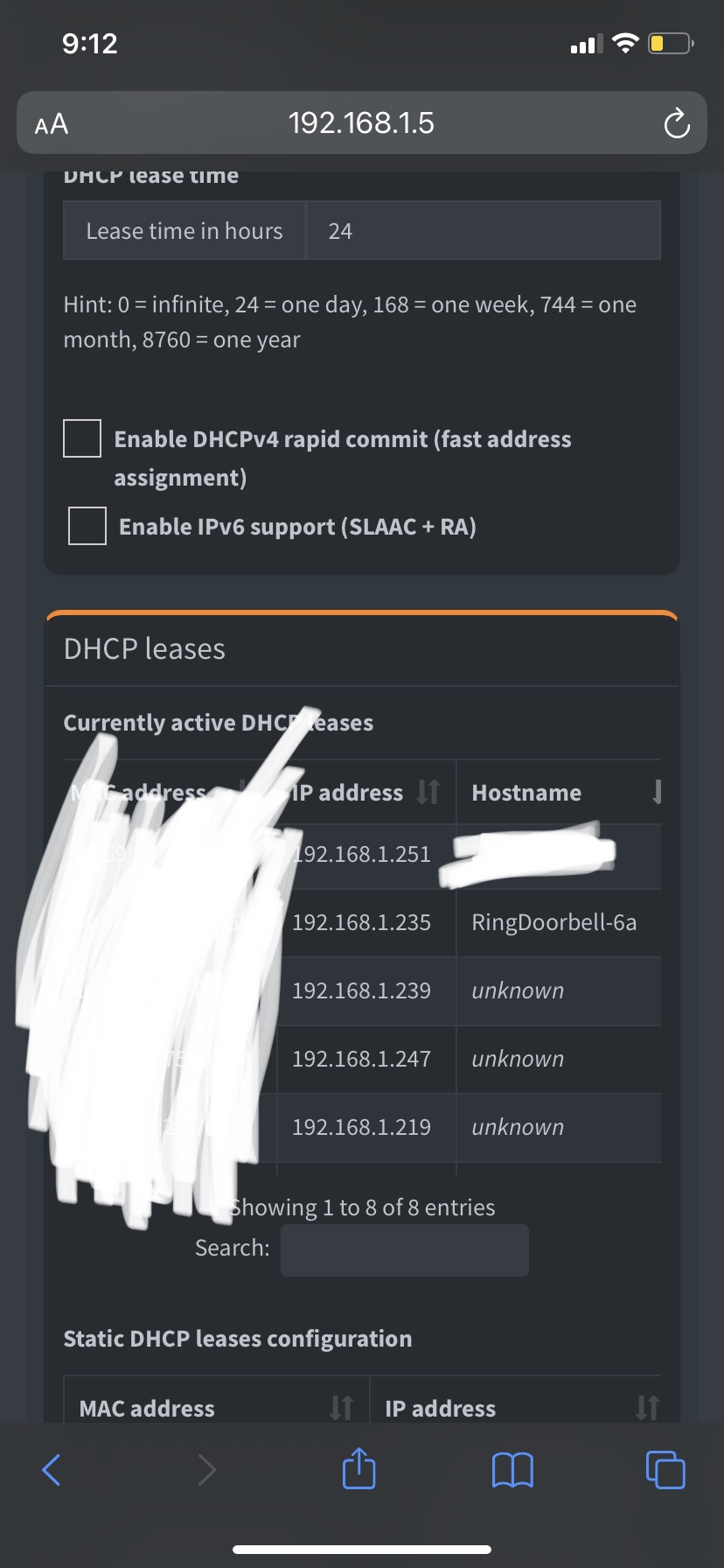 Thats an active lease so only (proper) option left is the DHCP server swap to get names and IP's resolved for your LAN.